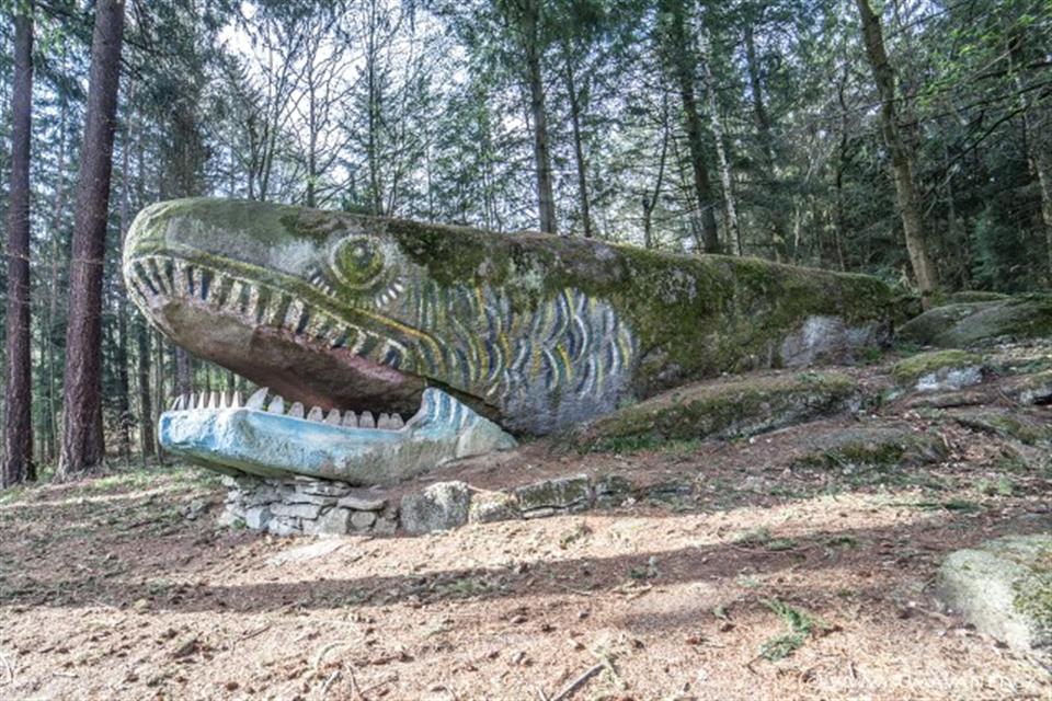 do podoby zvířat (želva, drak, žába). Patrné jsou i rozpadlé zbytky dalších kamenných zvířat.