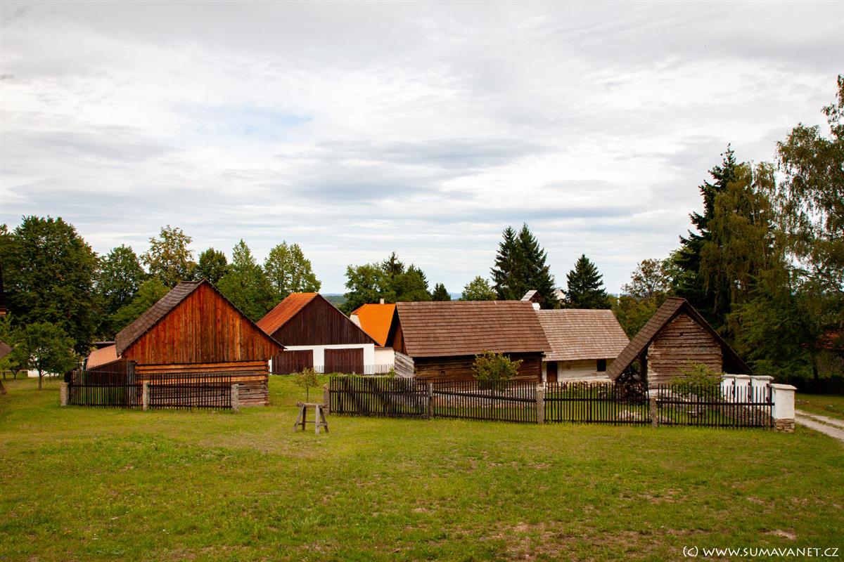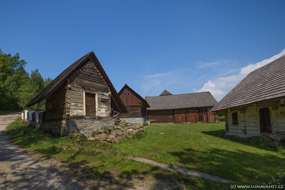 K nejzajímavějším exponátům patří obytná chalupa z Čachrova, roubené špýchary z Přetína a Svrčovce či kopie historické sušárny ovoce. Areál doplňuje kaple s barokní pokladničkou, smírčí kříž a další drobné stavby, které krásně ilustrují venkovskou architekturu a způsob života našich předků.